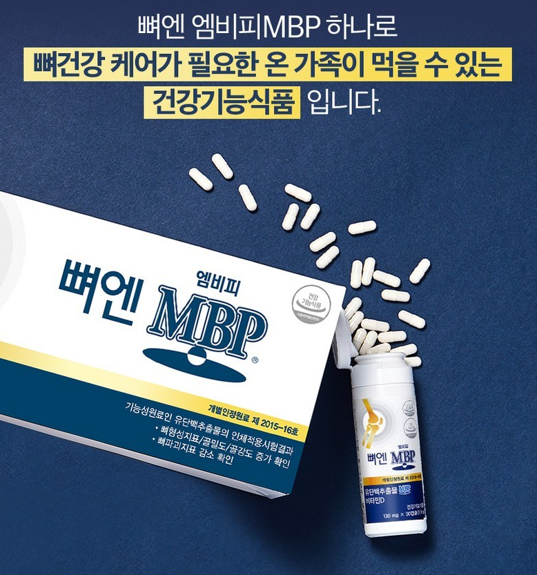 - 특징: 우유 단백질에서 추출한 MBP 성분으로 뼈 형성 및 유지에 도움